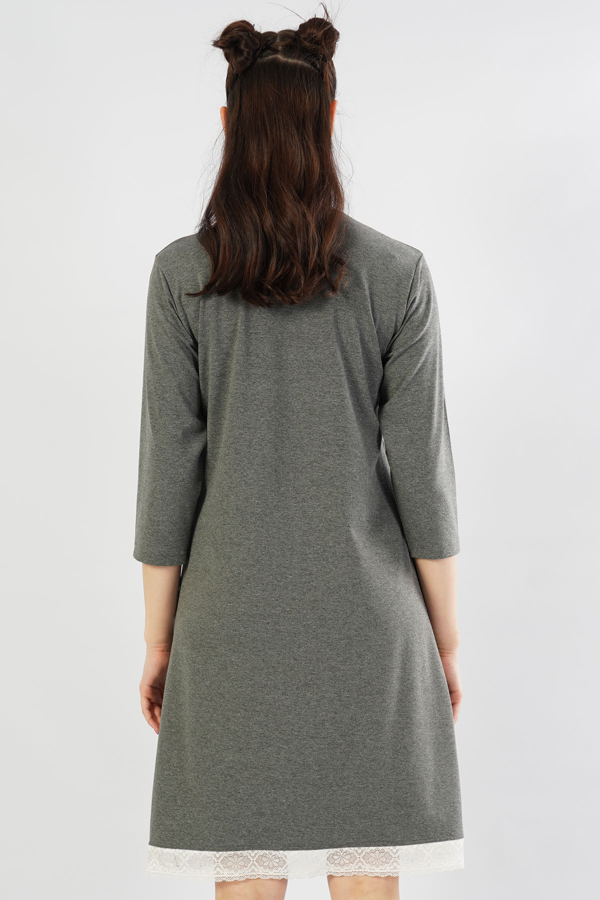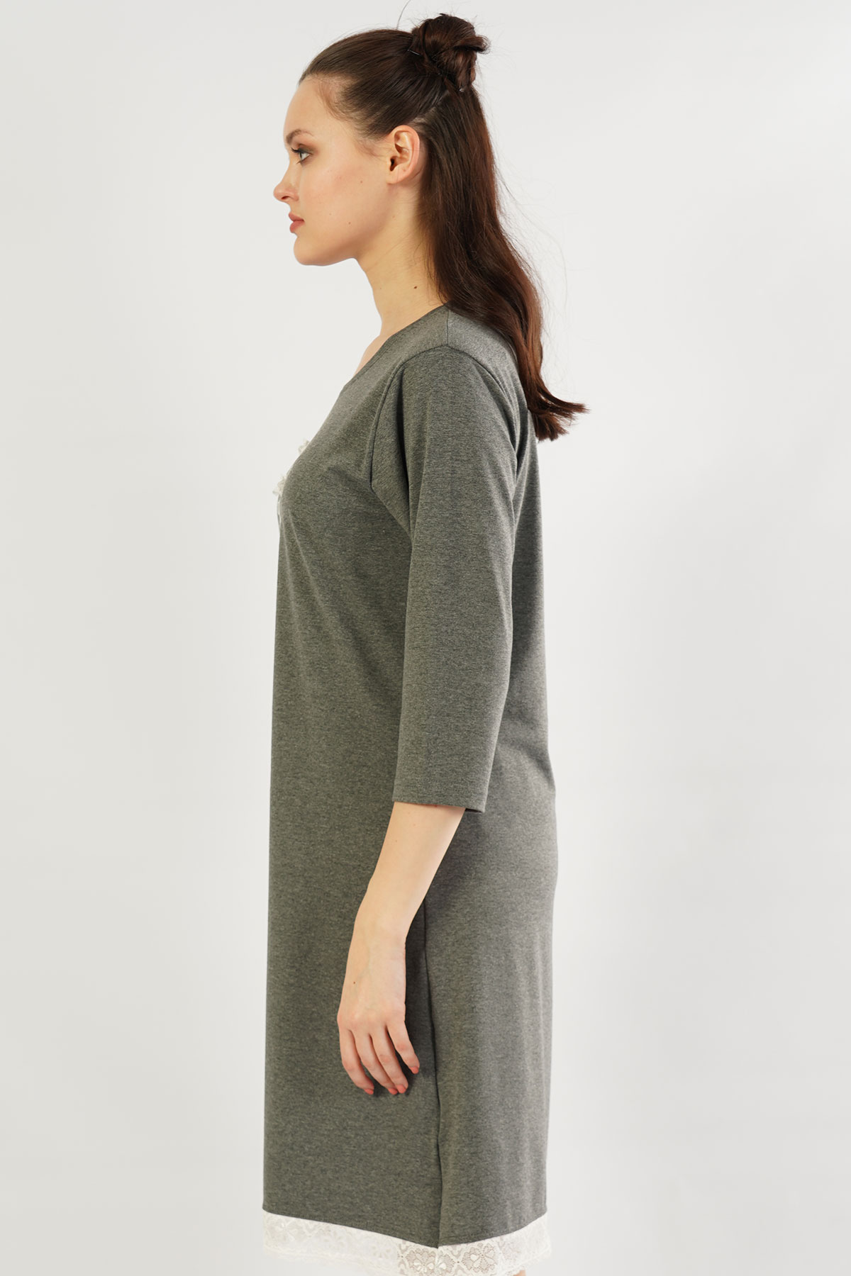 Model Tanımı: Kadın Lycralı Penye Bisiklet Yaka 3/4Kol Dantelli Gecelik *Mankenin Ölçüleri: Boy: 1,75 Göğüs: 86 Bel: 61 Basen: 90 *Mankenin Bedeni: S *Bedenler : S M L XL *Kumaş Karışımı: Pamuk 48%, Polyester 47%, Elastan 5%,