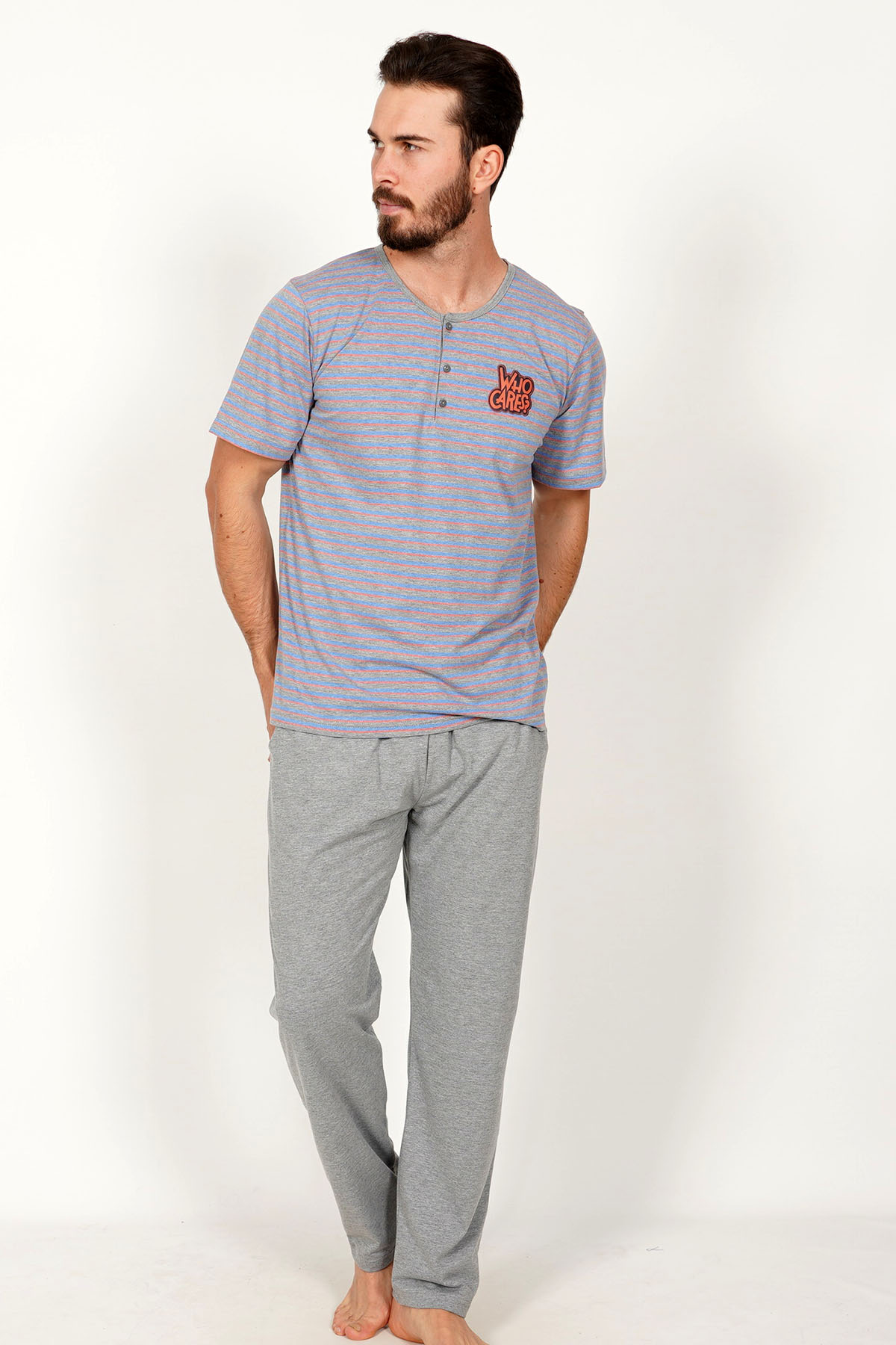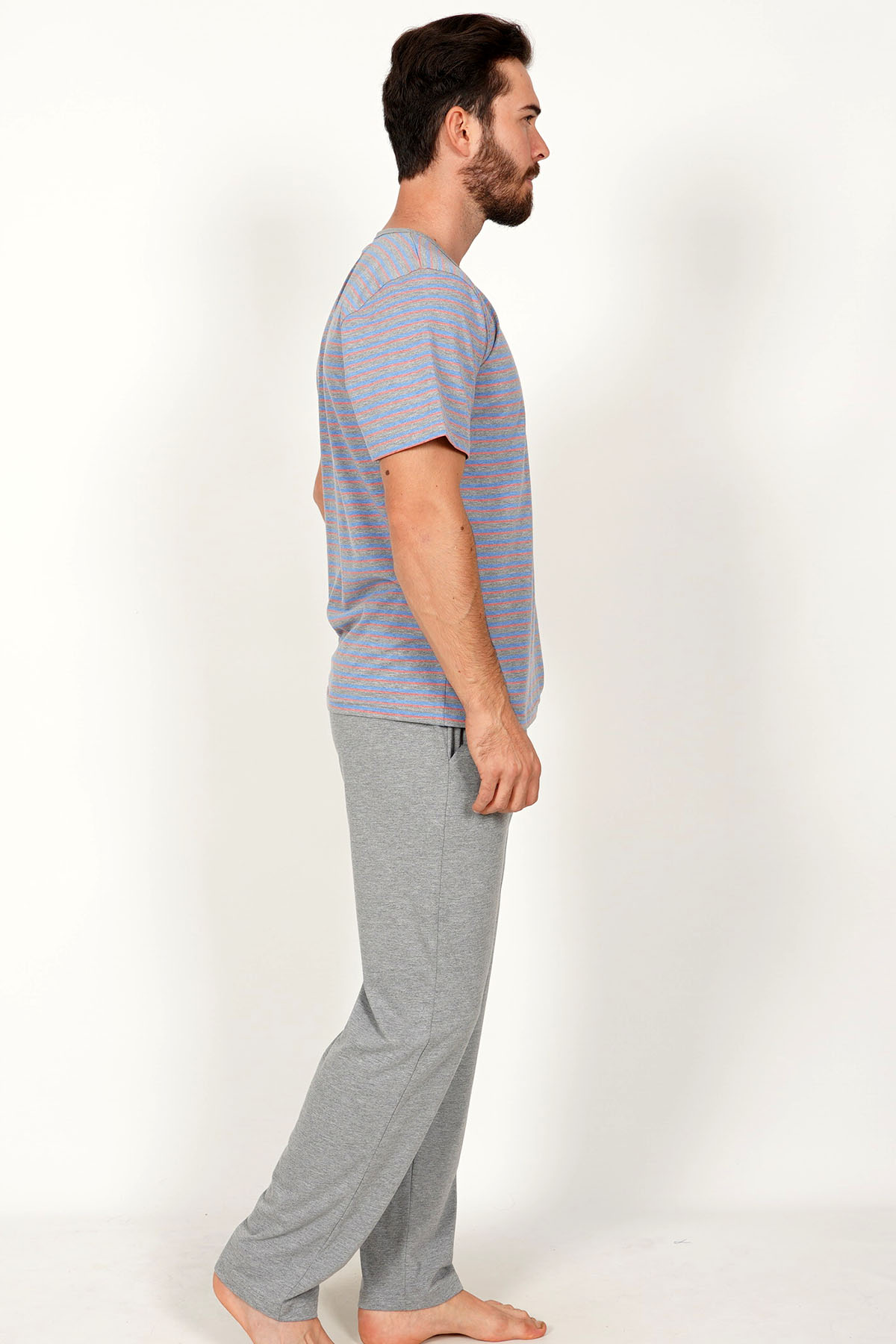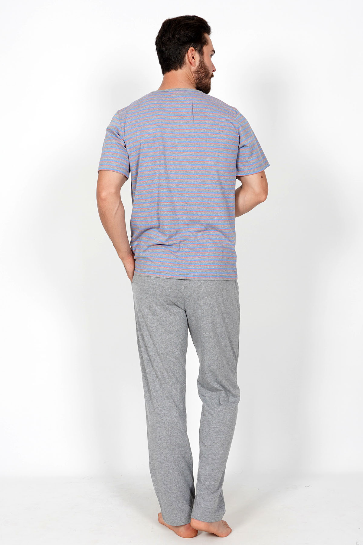 Model Tanımı: Cepli Erkek Penye Patlı Kısa Kol Dar Paça Pijama Takım *Mankenin Ölçüleri: Boy: 1,90 Göğüs: 104 Bel: 82 Basen: 104 *Mankenin Bedeni: L *Bedenler : M L XL *Kumaş Karışımı: Pamuk 70%, Polyester 30%,