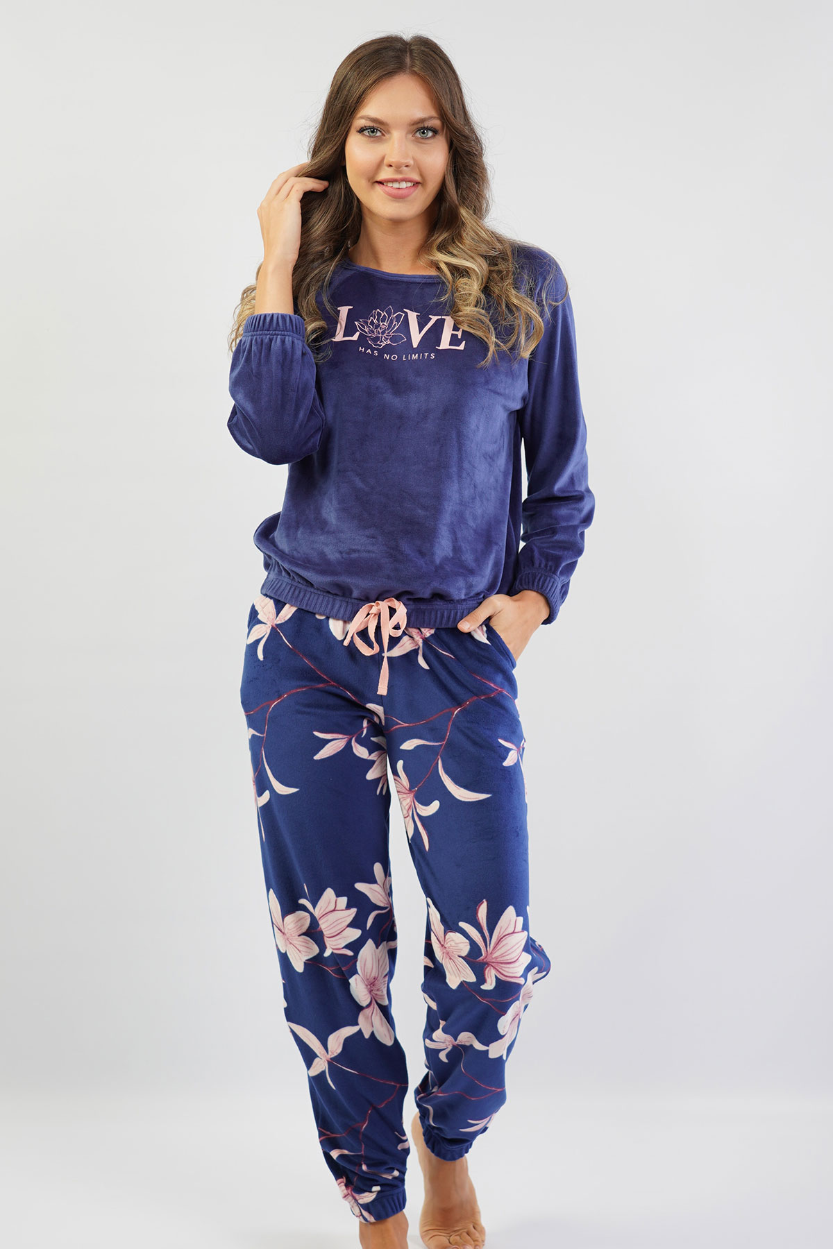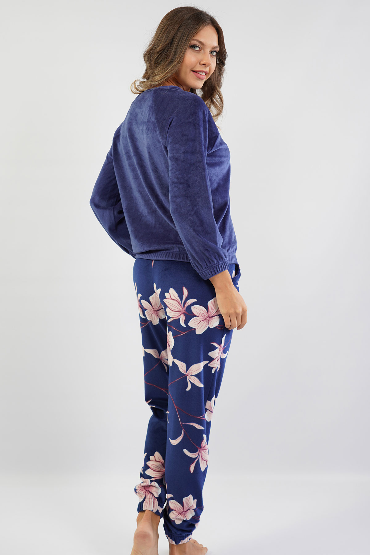 Model Tanımı: Kadın Lycralı Kadifebisiklet Yaka Düşük Omuzlu Uzun Kol Belipaçası Büzgülücepli Pijama Takım *Mankenin Ölçüleri: Boy: 1,75 Göğüs: 86 Bel: 61 Basen: 90 *Mankenin Bedeni: S *Bedenler : S M L XL *Kumaş Karışımı: Polyester 96%, Elastan 4%,