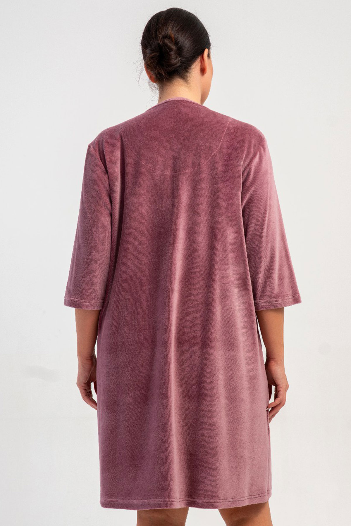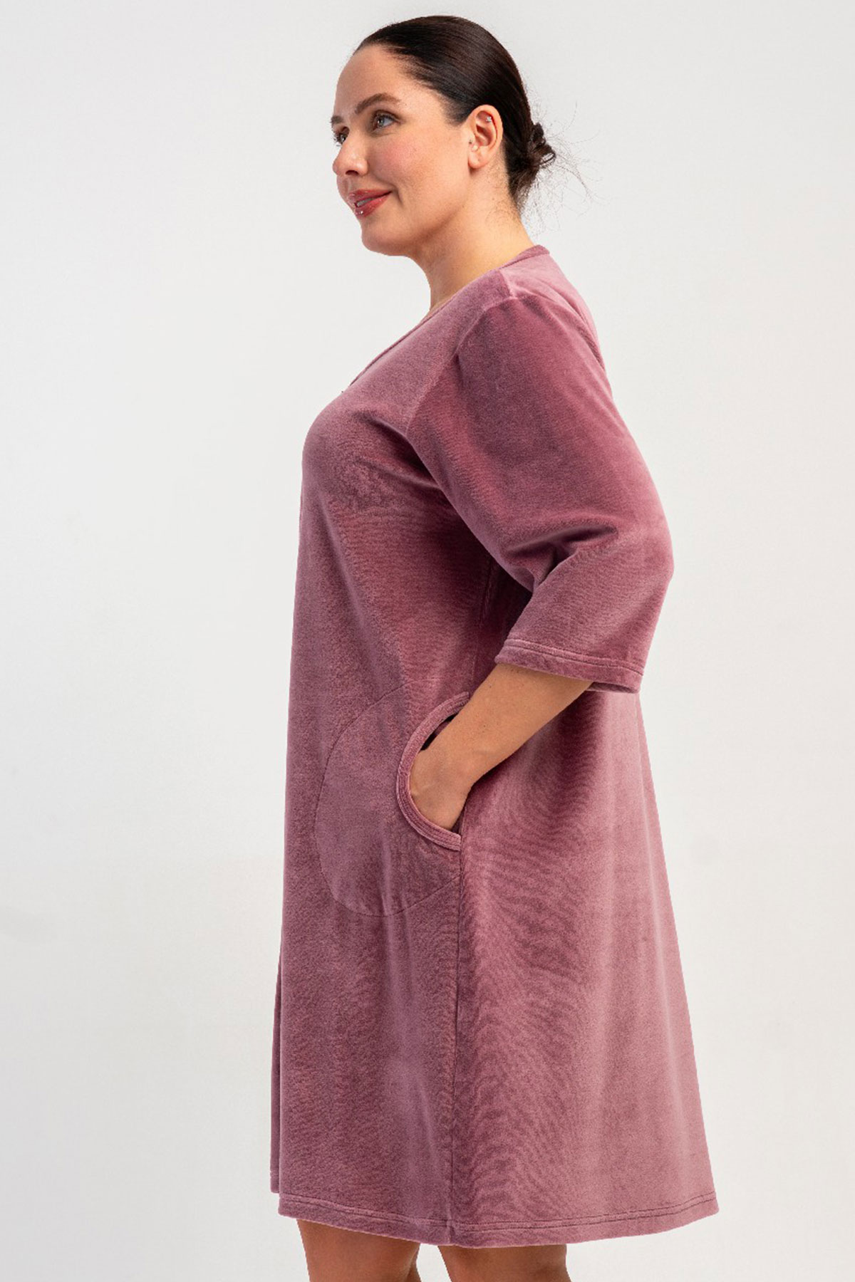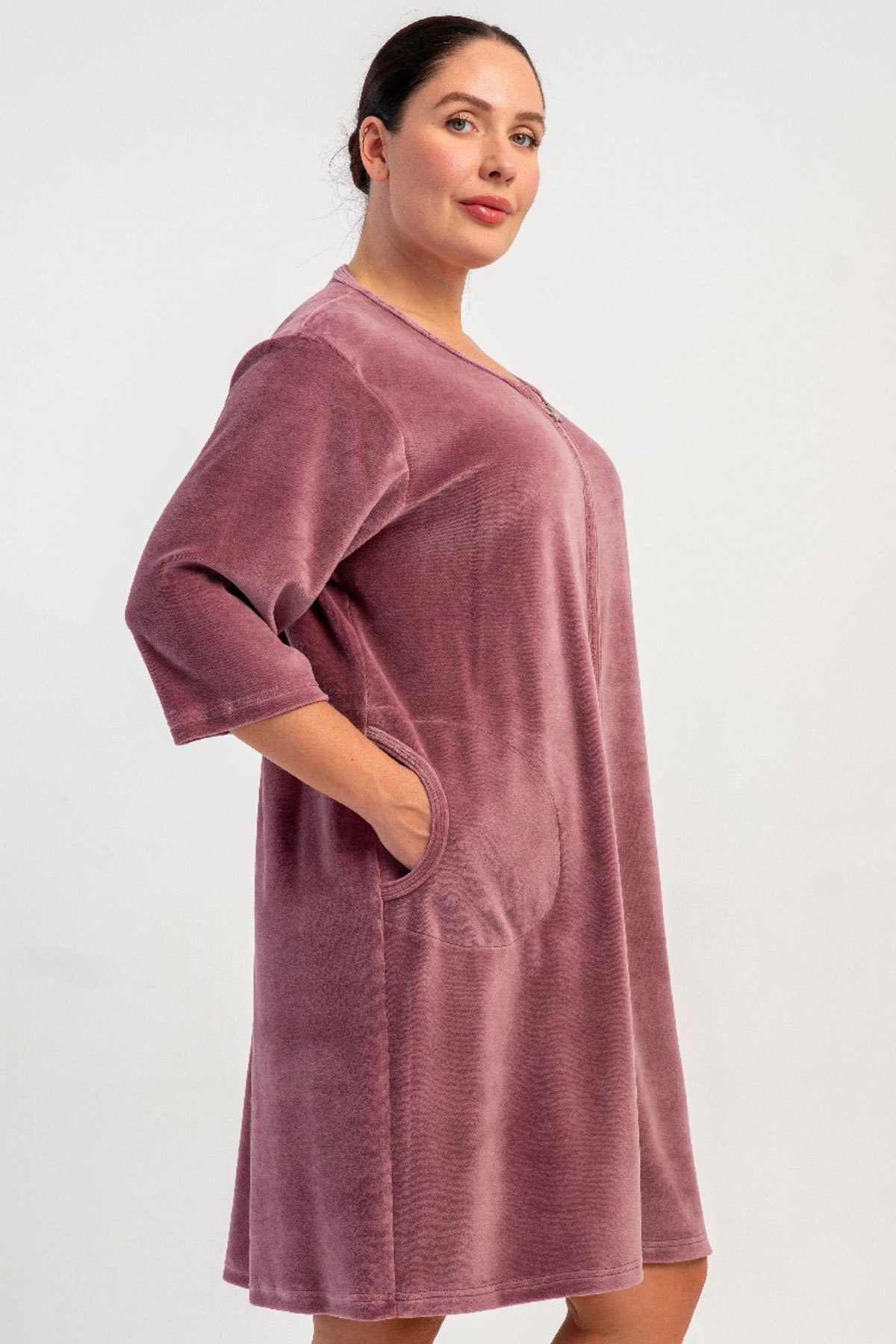Kadın Pamuk Kadife büyük Beden Fakir Kol Fermuarlı Ev Elbisesi