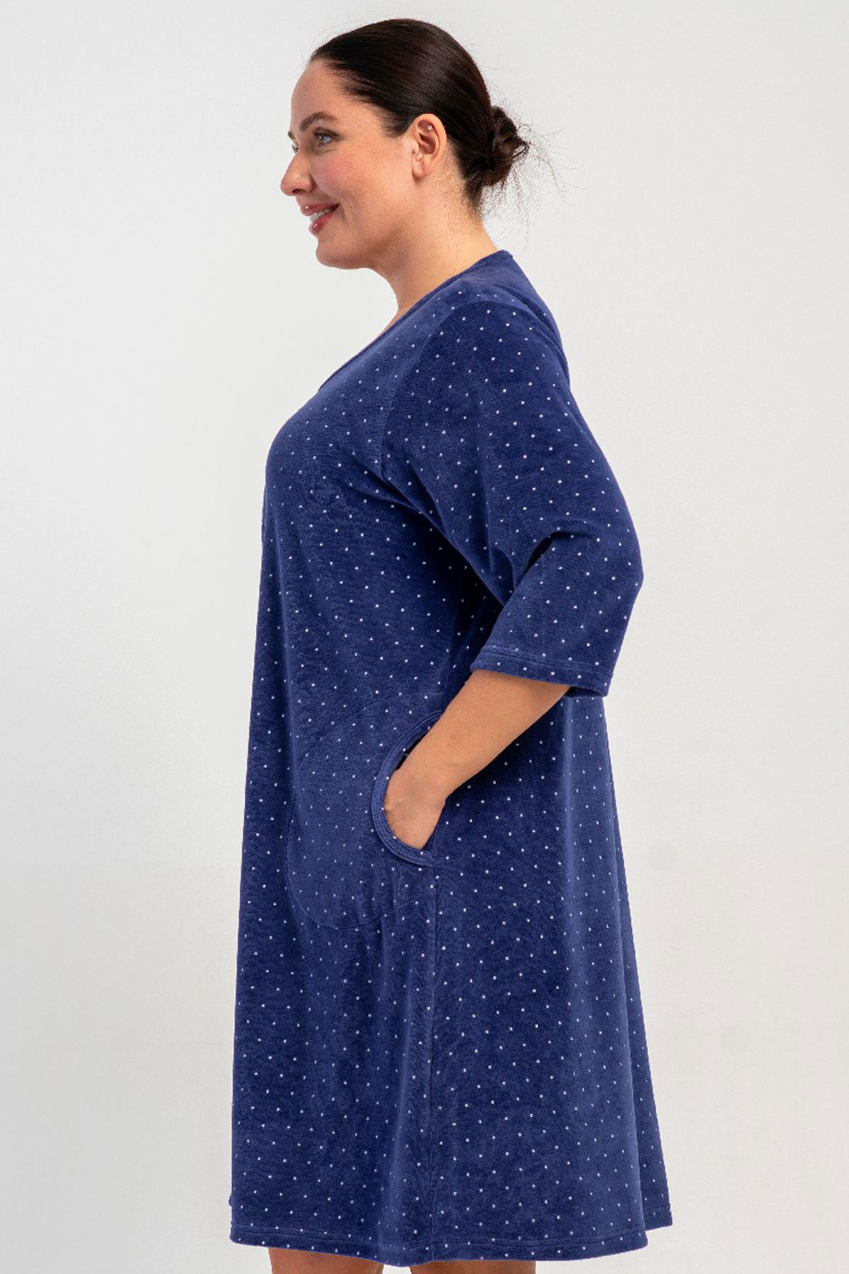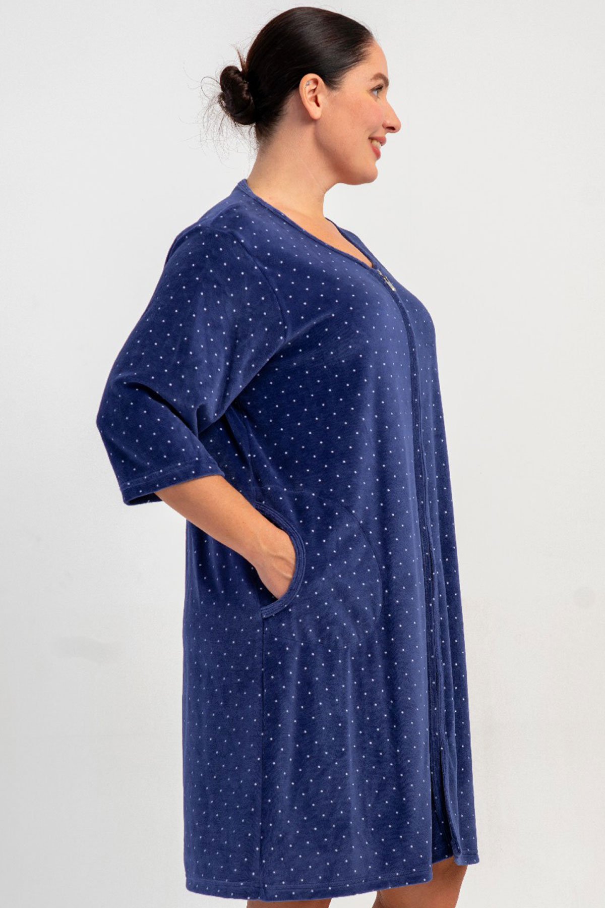 Kadın Pamuk Kadife büyük Beden Fakir Kol Fermuarlı Gecelik