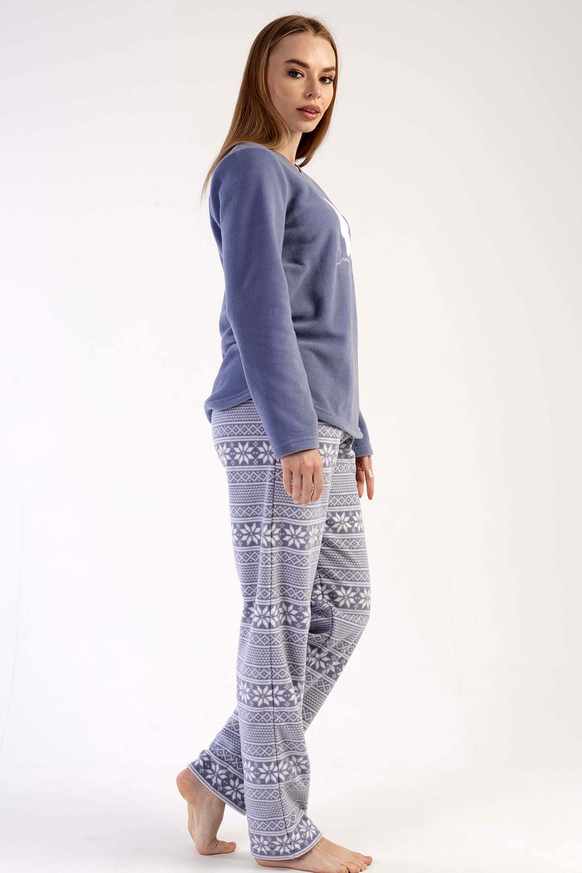 Kadın Polar Uzun Kol Ceblı Pijama Takım