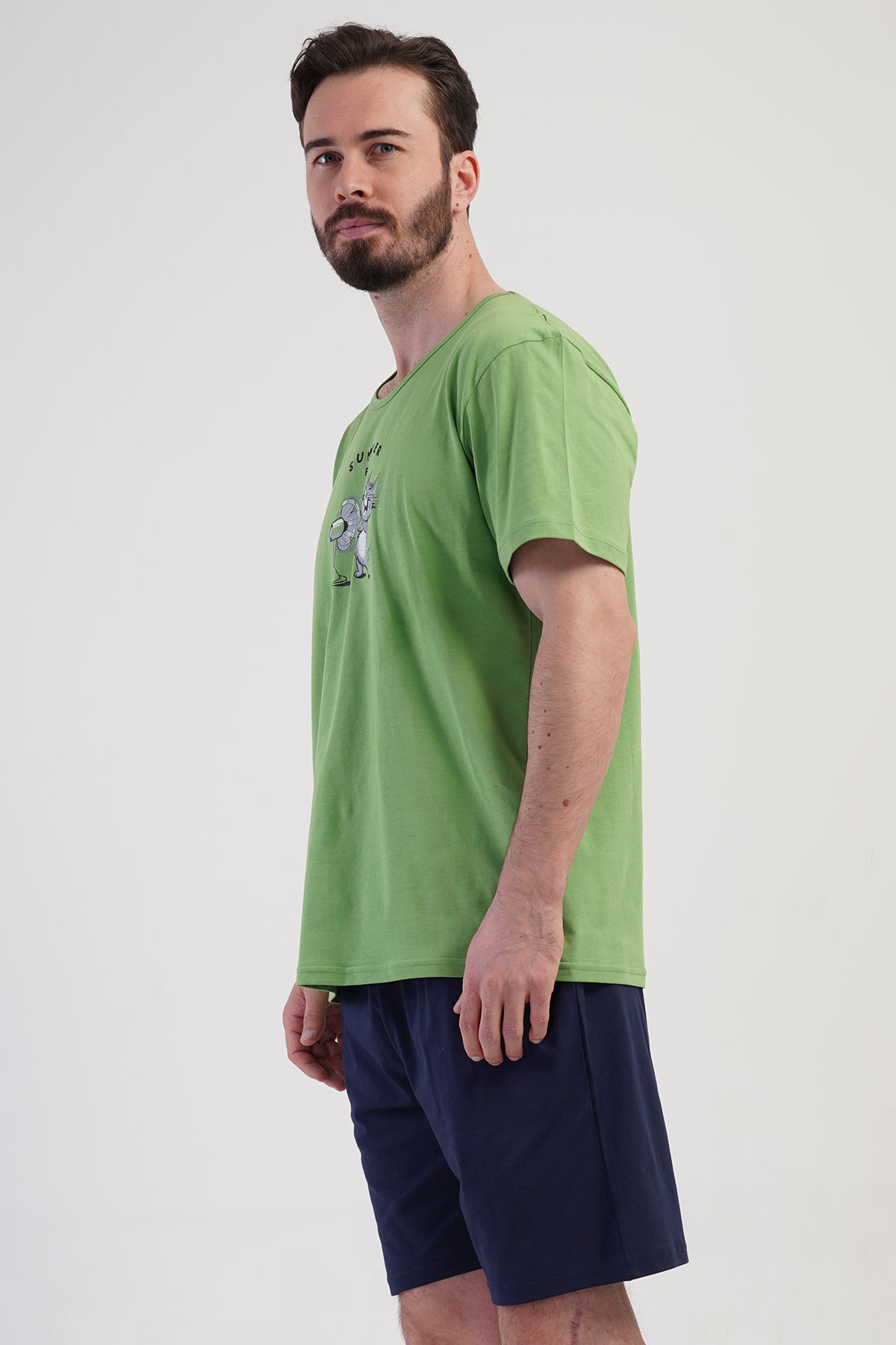 Pamuklu Erkek Kısa Kol Şortlu Pijama Takım