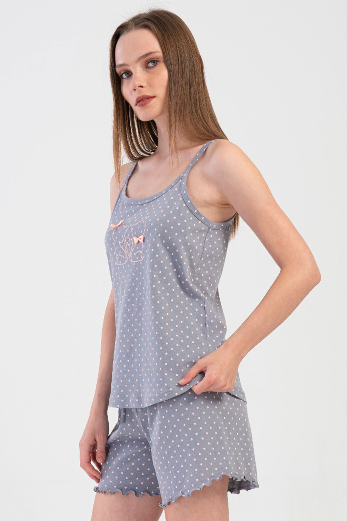 Pamuklu Kadın Ip Askılı Şortlu Pijama Takım