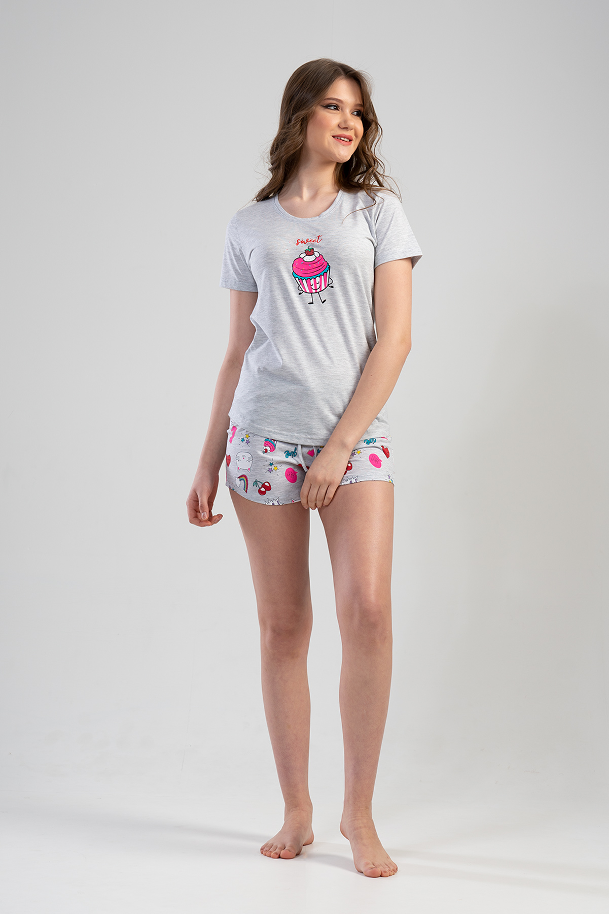 Model Tanımı: Kadın Penye Bisiklet Yaka Kısa Kol Etegi Oval Şortlu Pijama Takım *Mankenin Ölçüleri: Boy: 1,75 Göğüs: 86 Bel: 61 Basen: 90 *Mankenin Bedeni: S *Bedenler : S M L XL *Kumaş Karışımı: Pamuk 100%,