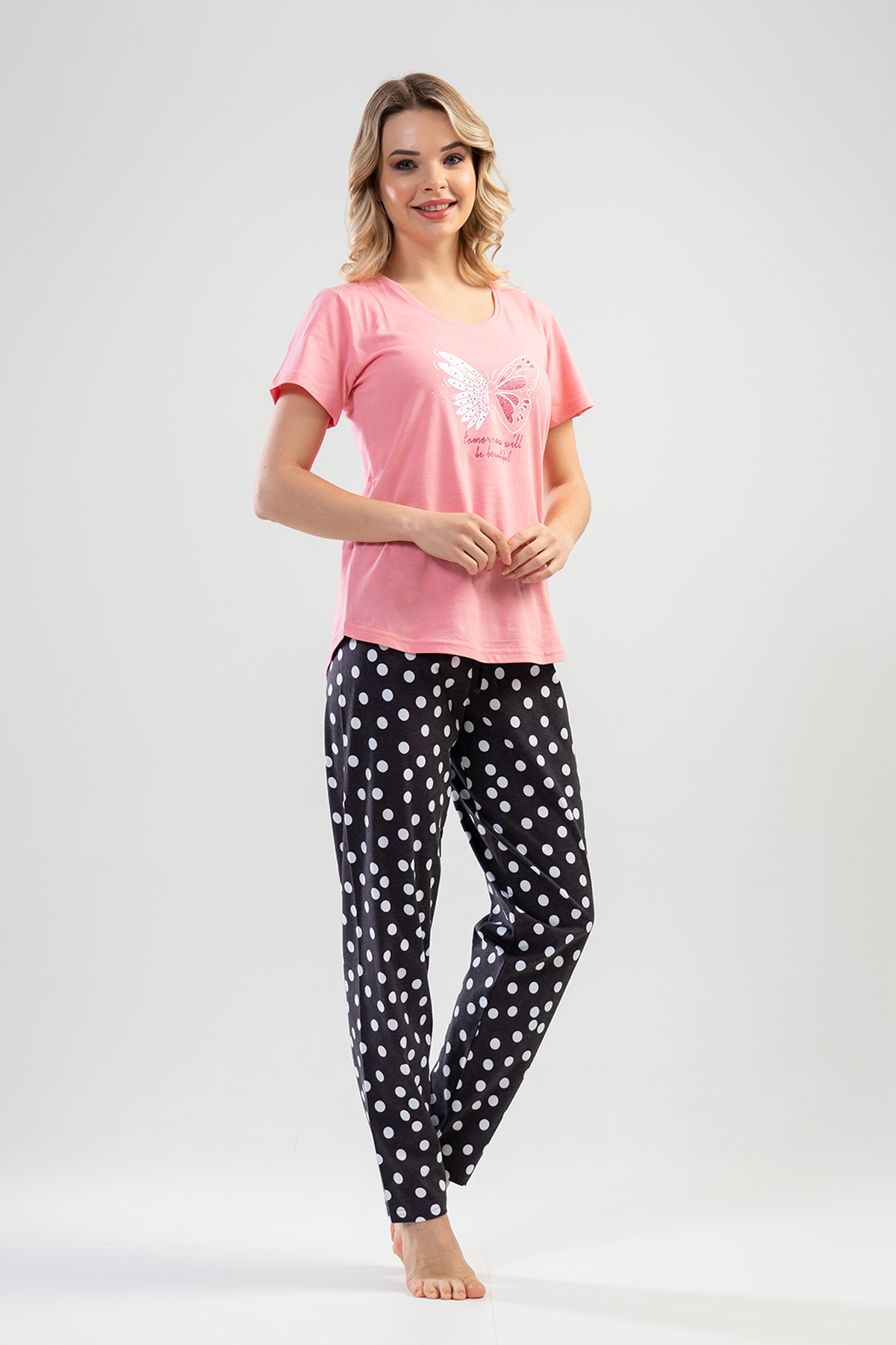 Model Tanımı: Kadın Penye Bisiklet Yaka Kısa Kol Eteği Oval Pijama Takım *Mankenin Ölçüleri: Boy: 1,75 Göğüs: 86 Bel: 61 Basen: 90 *Mankenin Bedeni: S *Bedenler : S M L XL *Kumaş Karışımı: Pamuk 100%,