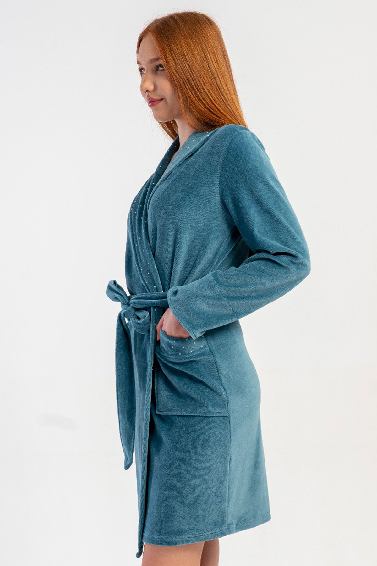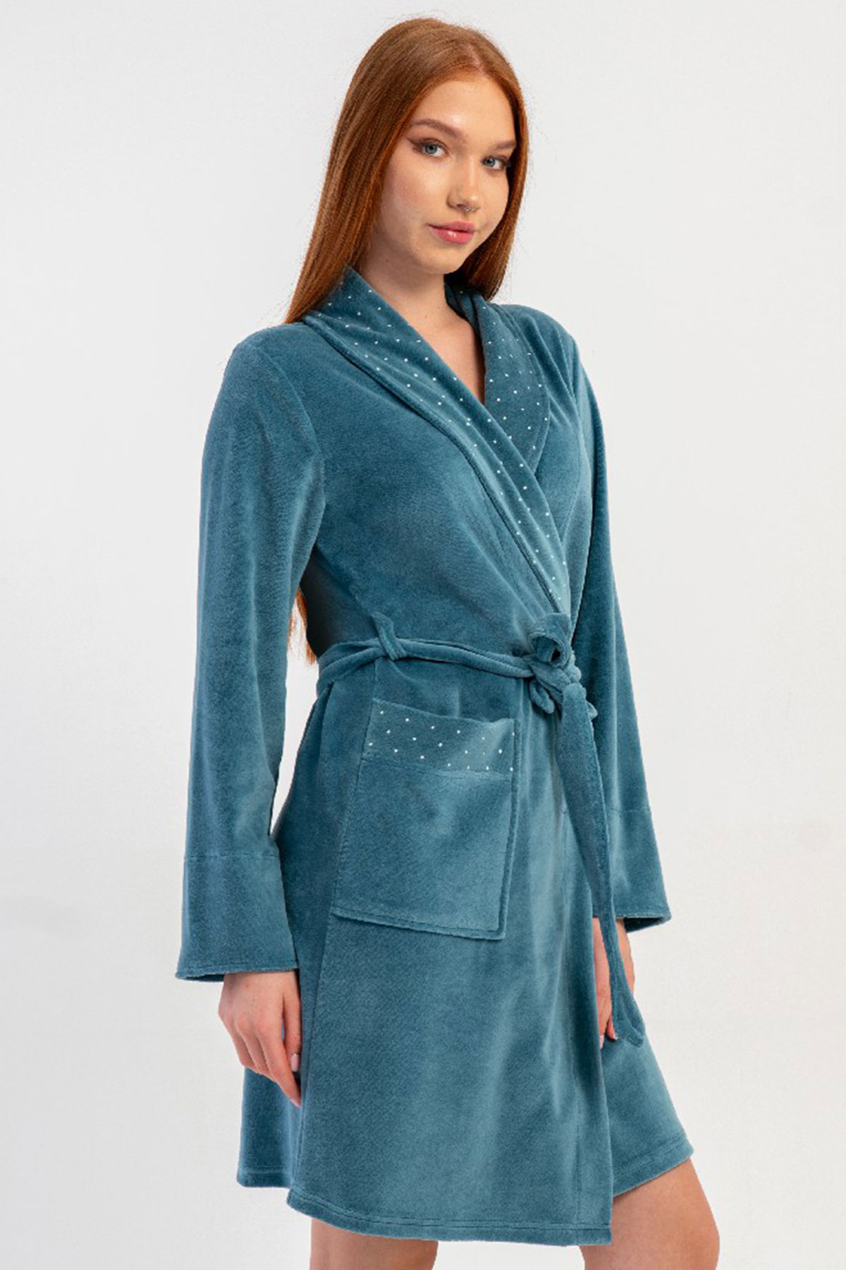 Pamuklu Kadın Pamuk Kadife uzun Kol Sal Yaka Sabahlık