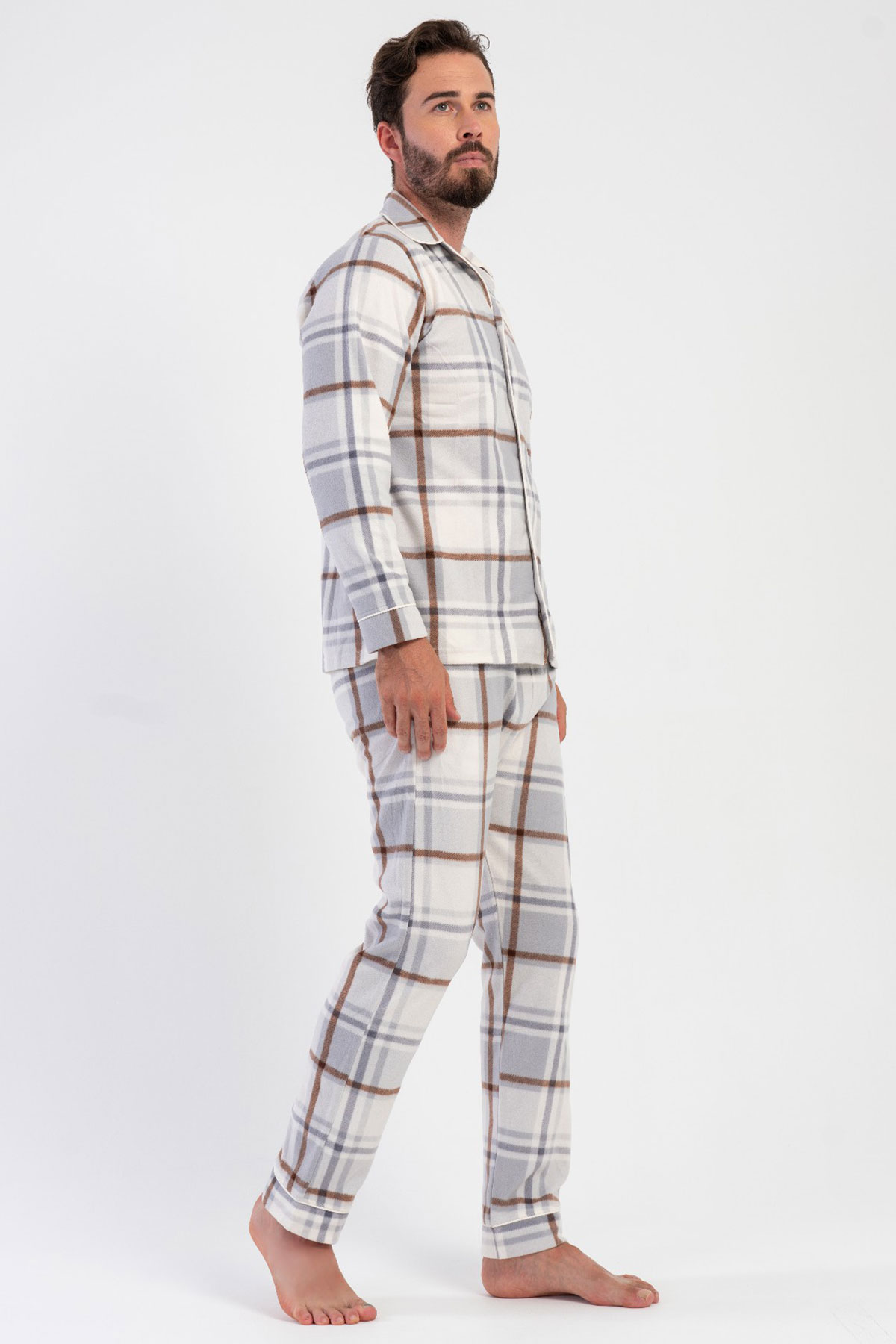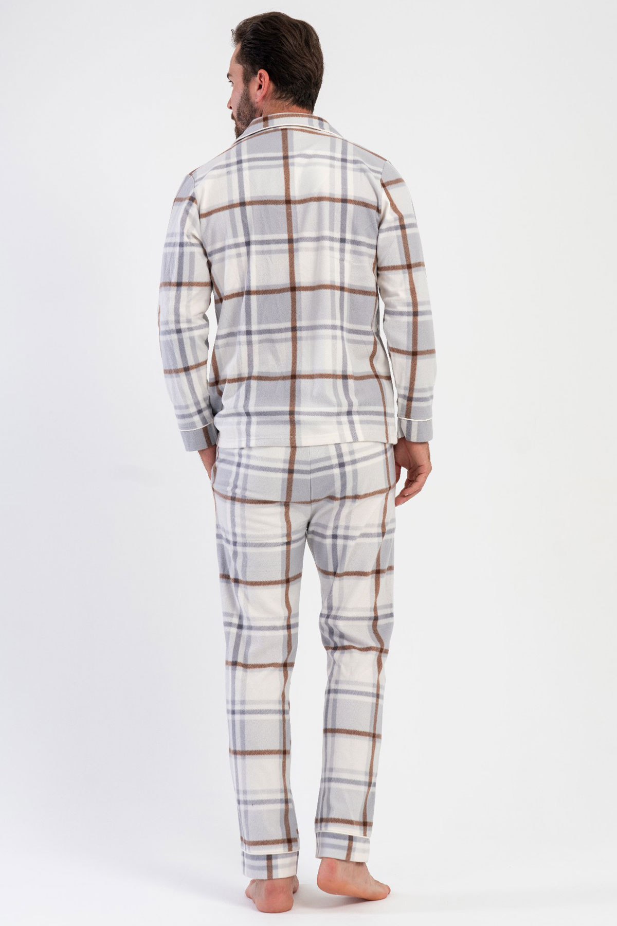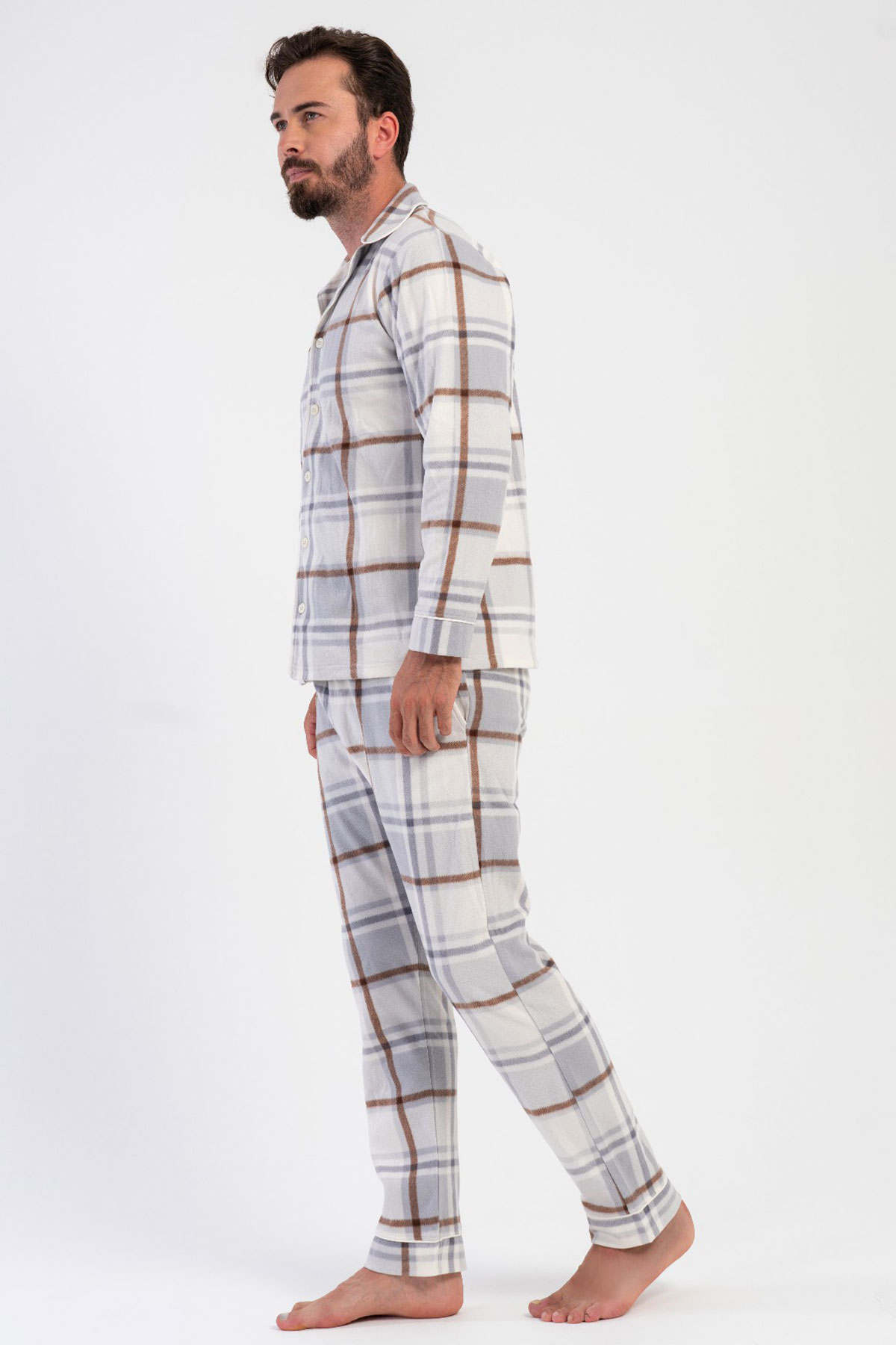 Erkek Polar Tamamı Düğmeli Uzun Kol Pijama Takım