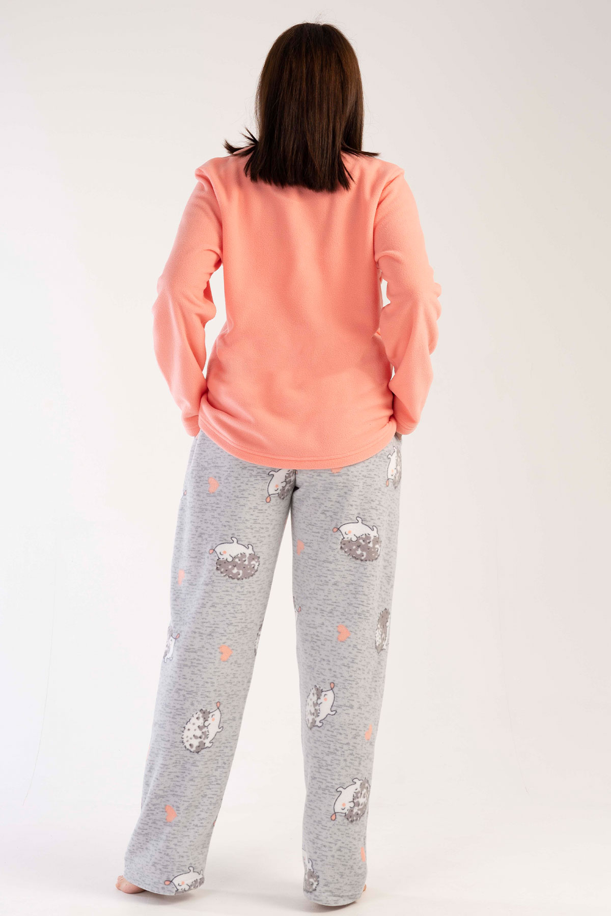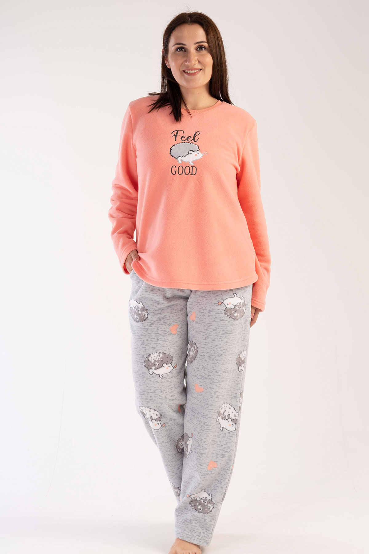 Kadın Polar Büyük Beden Uzun Kol Cepli Pijama Takım