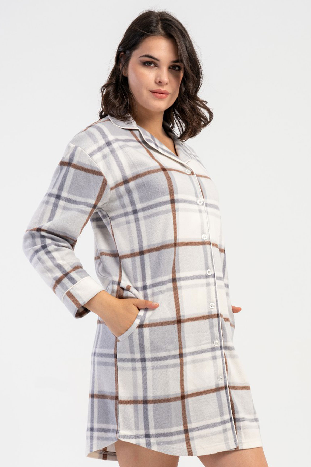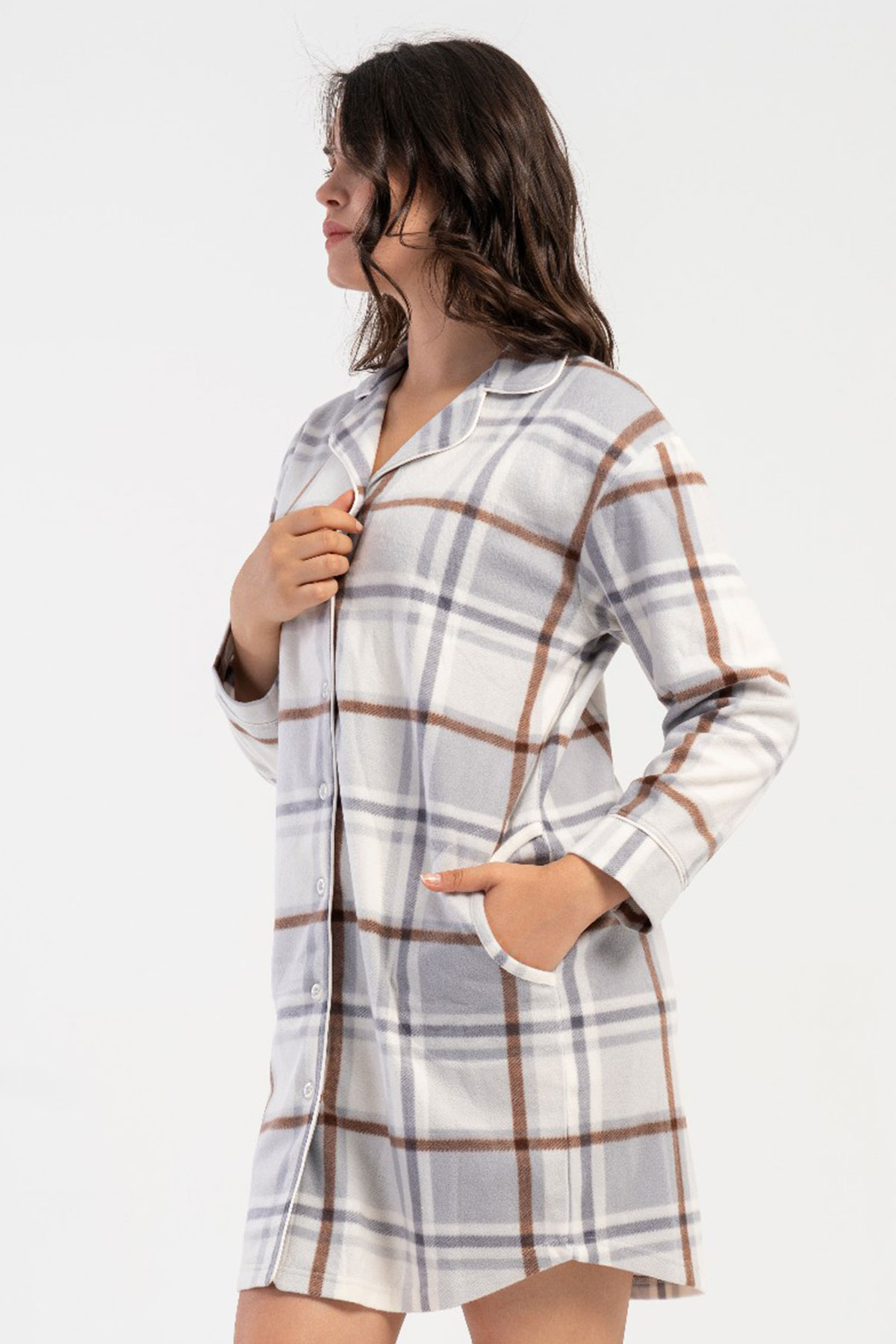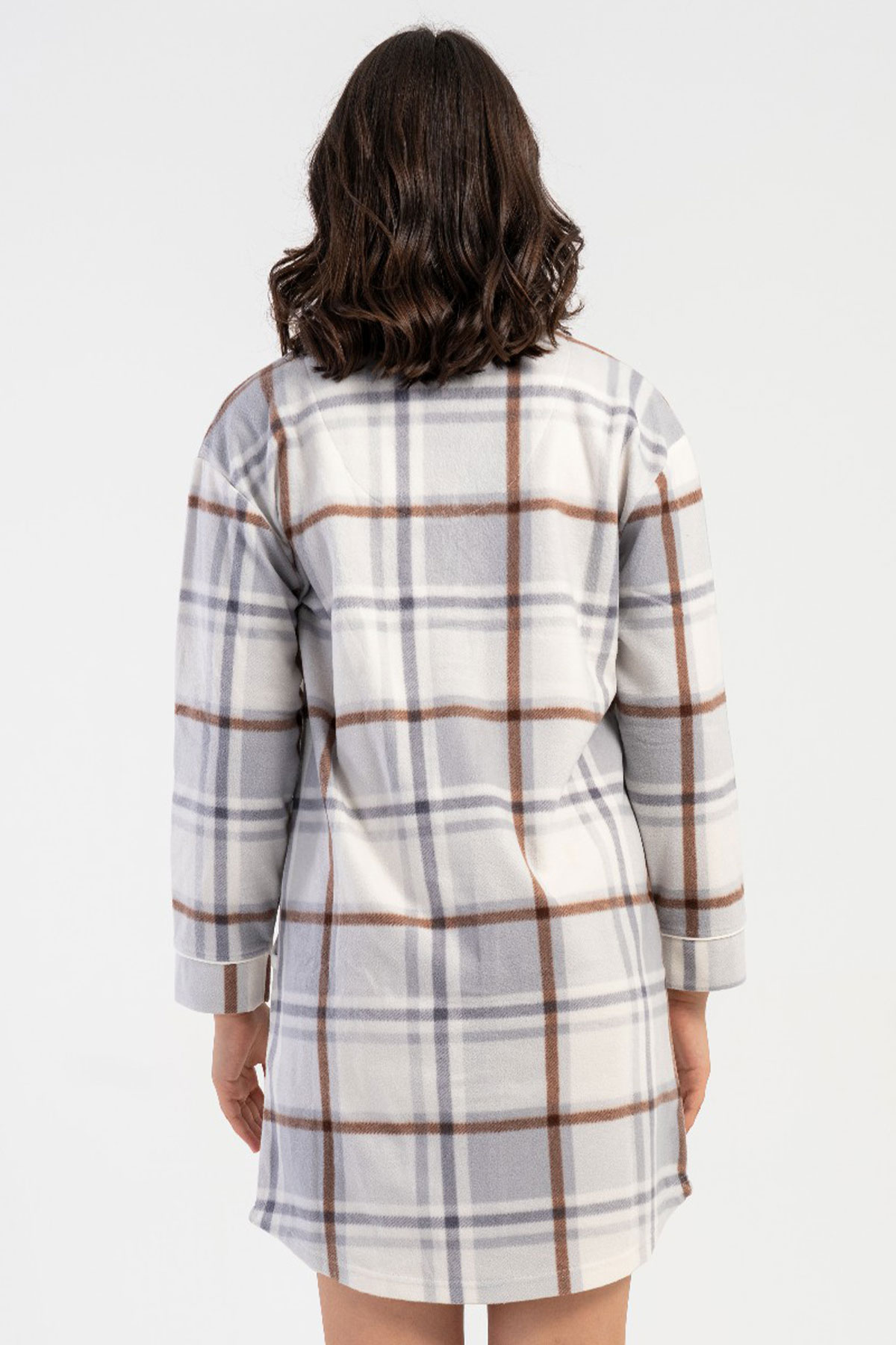 Kadın Polar Tamamı Düğmeli Uzun Kol Gecelik
