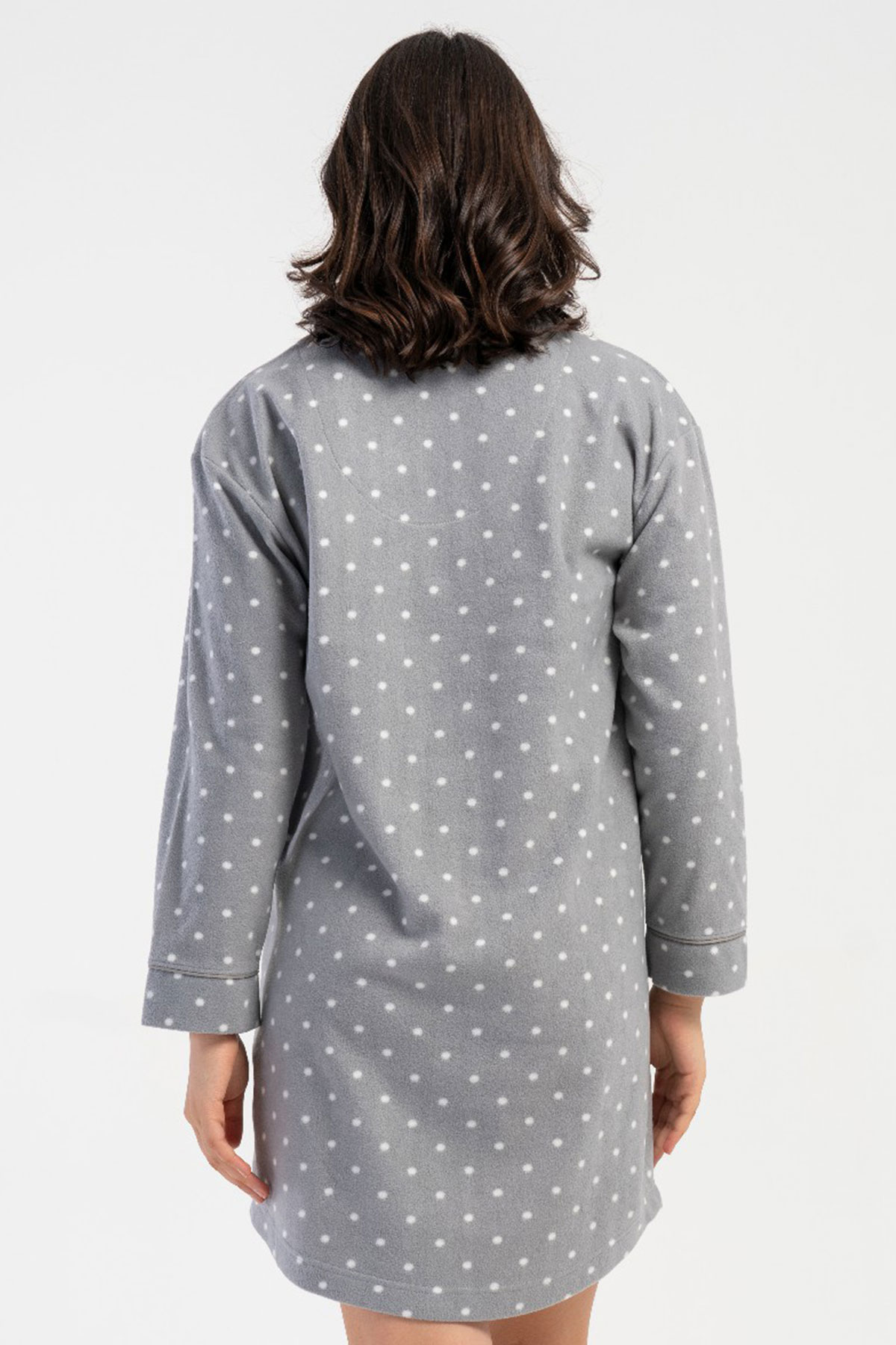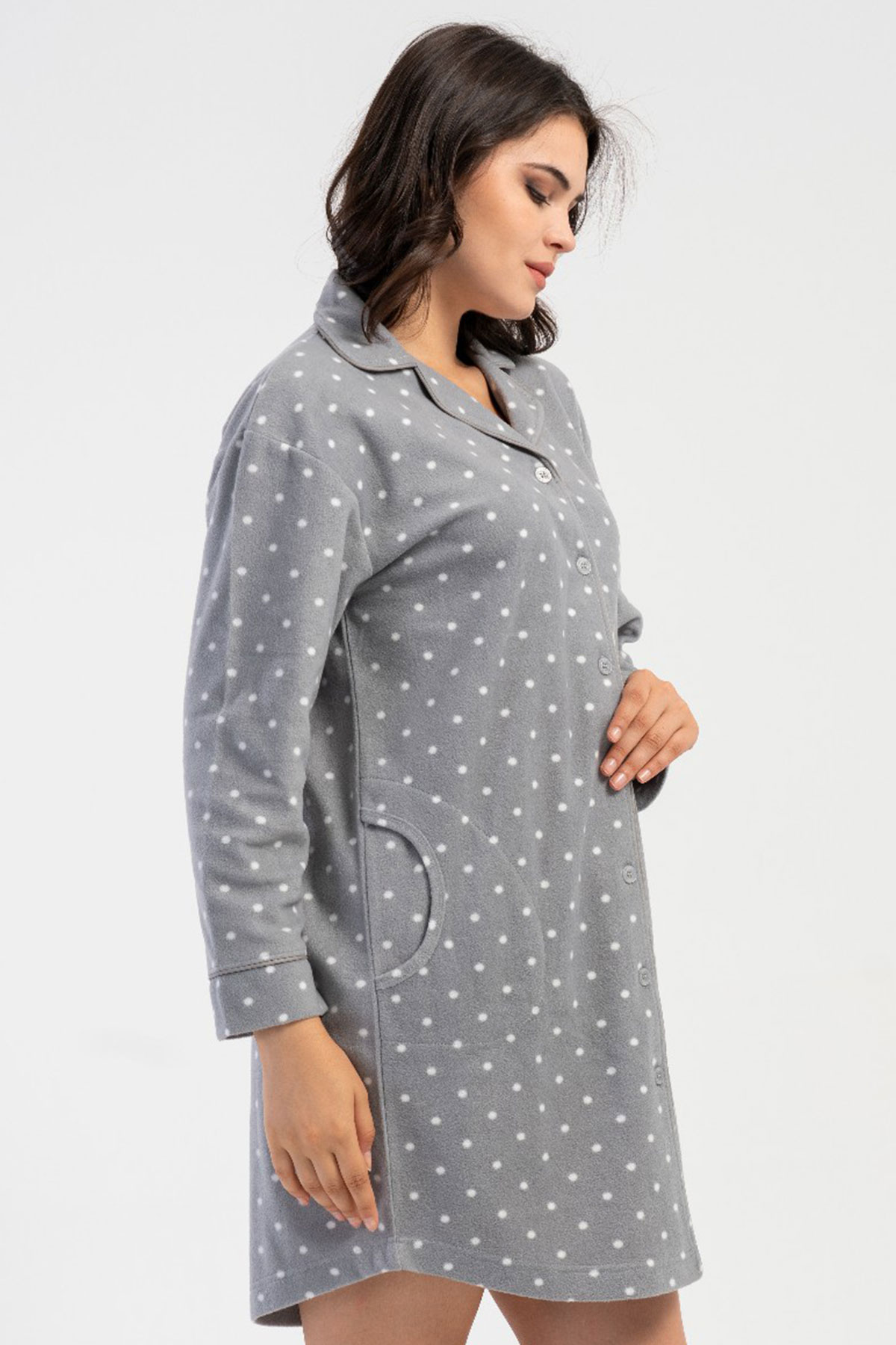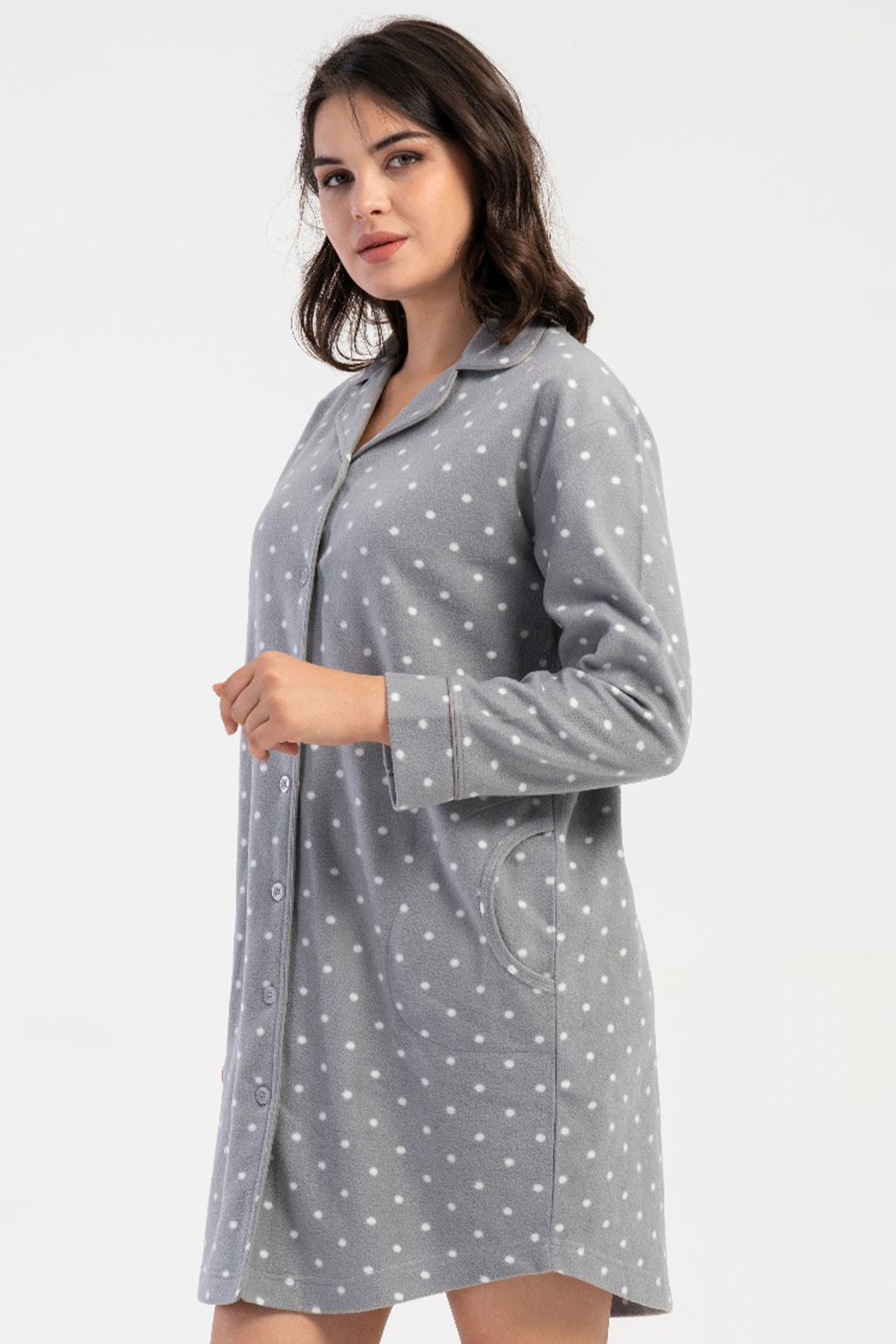 Kadın Polar Tamamı Düğmeli Uzun Kol Gecelik