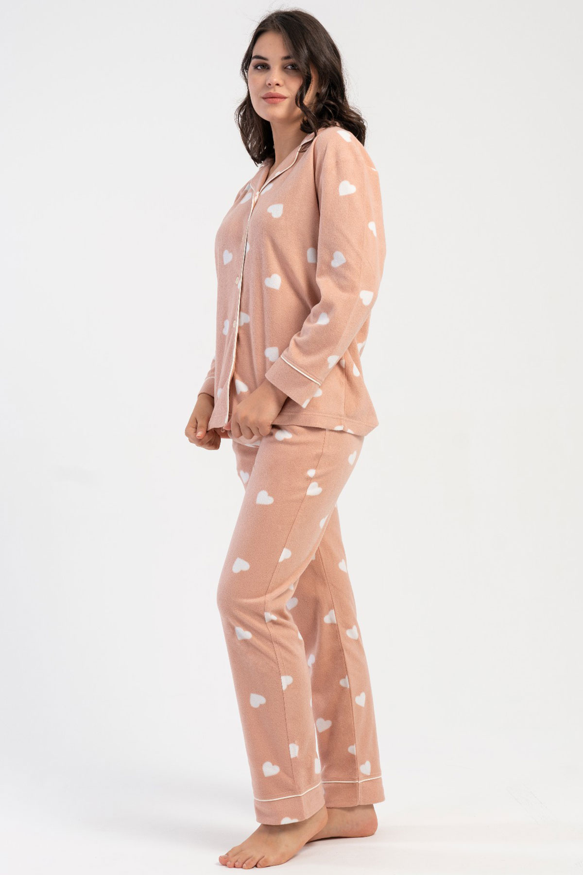 Kadın Polar Tamamı Düğmeli Uzun Kol Pijama Takım