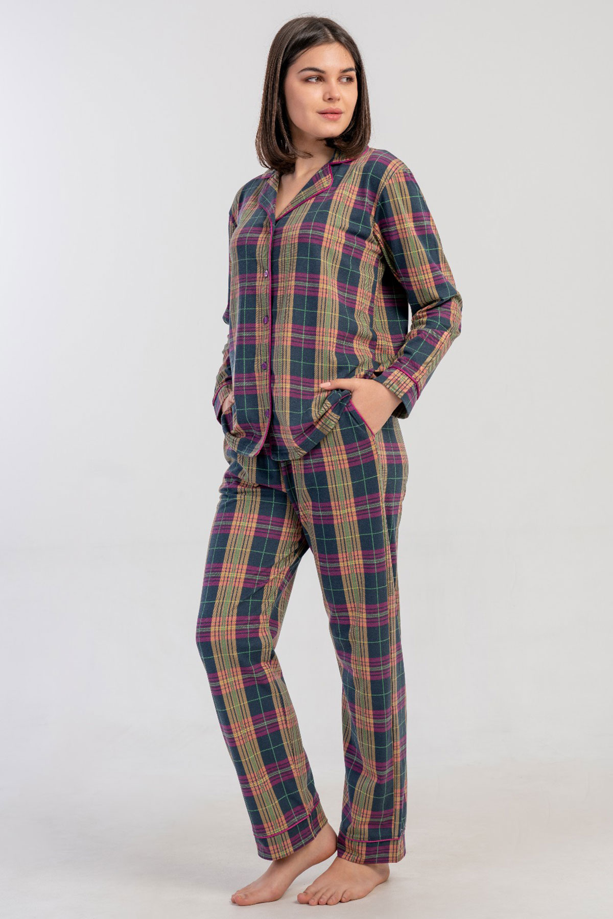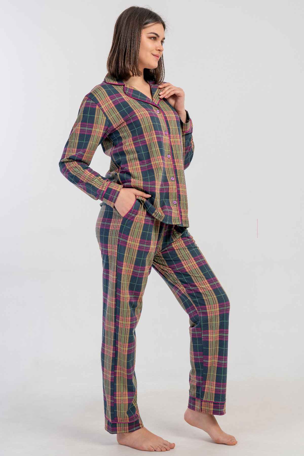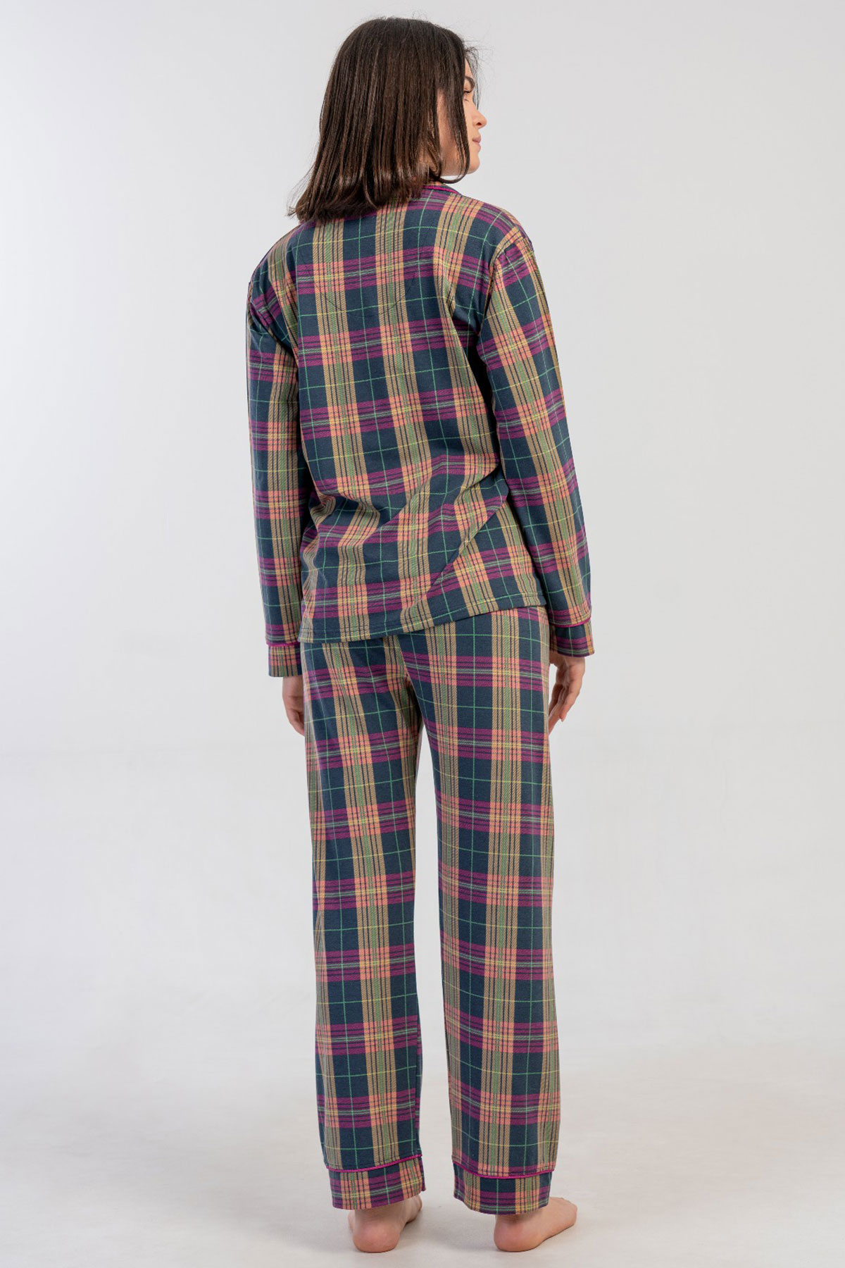 Kadın Tamamı Düğmeli Uzun Kol Pijama Takım