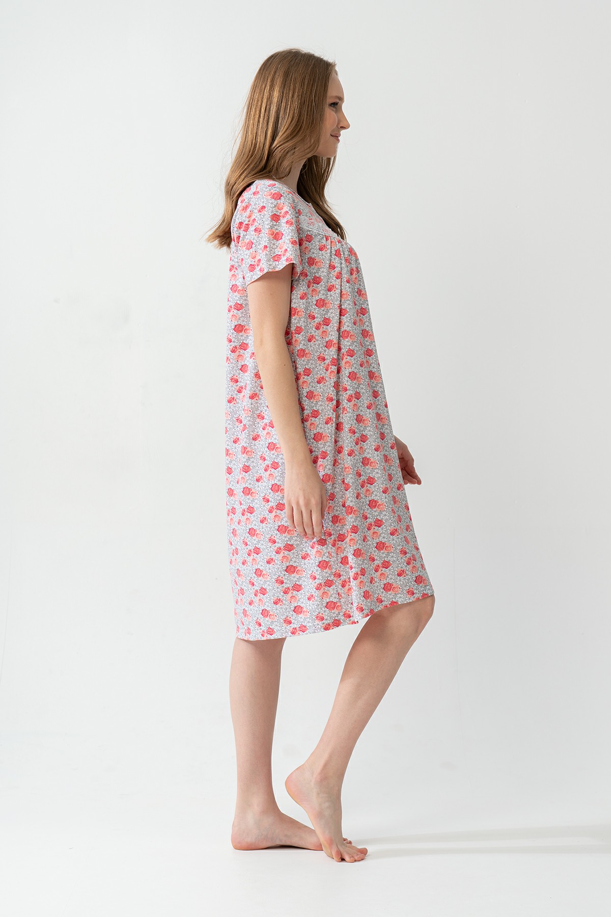 Model Tanımı: Kadın Babaanne Kısa.Kol Gecelik *Mankenin Ölçüleri: Boy: 1,75 Göğüs: 86 Bel: 61 Basen: 90 *Mankenin Bedeni: S *Bedenler : M L XL XXL *Kumaş Karışımı: Pamuk 100%,