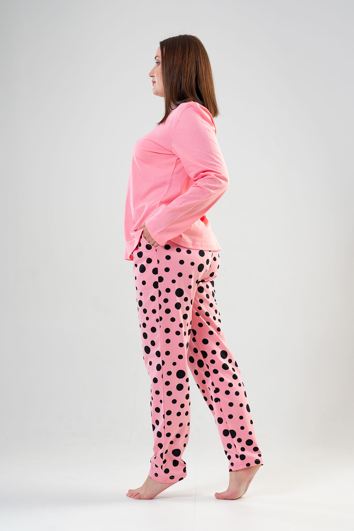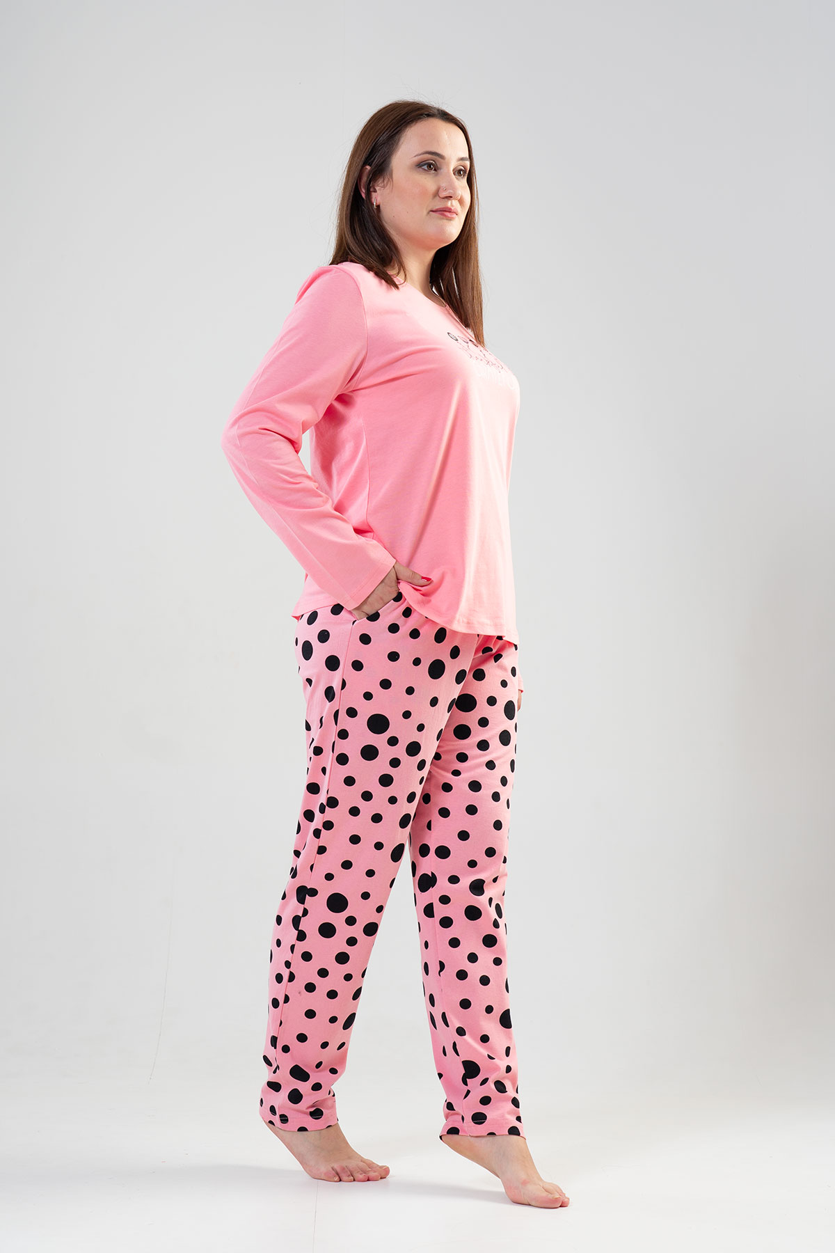 Model Tanımı: Kadın Penye Büyük Beden Bisiklet Yaka Uzun Kol Eteği Oval Cepli Pijama Takım *Mankenin Ölçüleri: Boy: 1.72, Göğüs: 104, Bel: 88, Kalça: 112 *Mankenin Bedeni: L *Bedenler : 1XL 2XL 3XL 4XL *Kumaş Karışımı: Pamuk 90%, Polyester 10%,