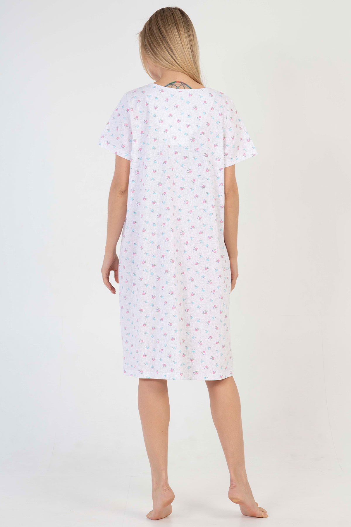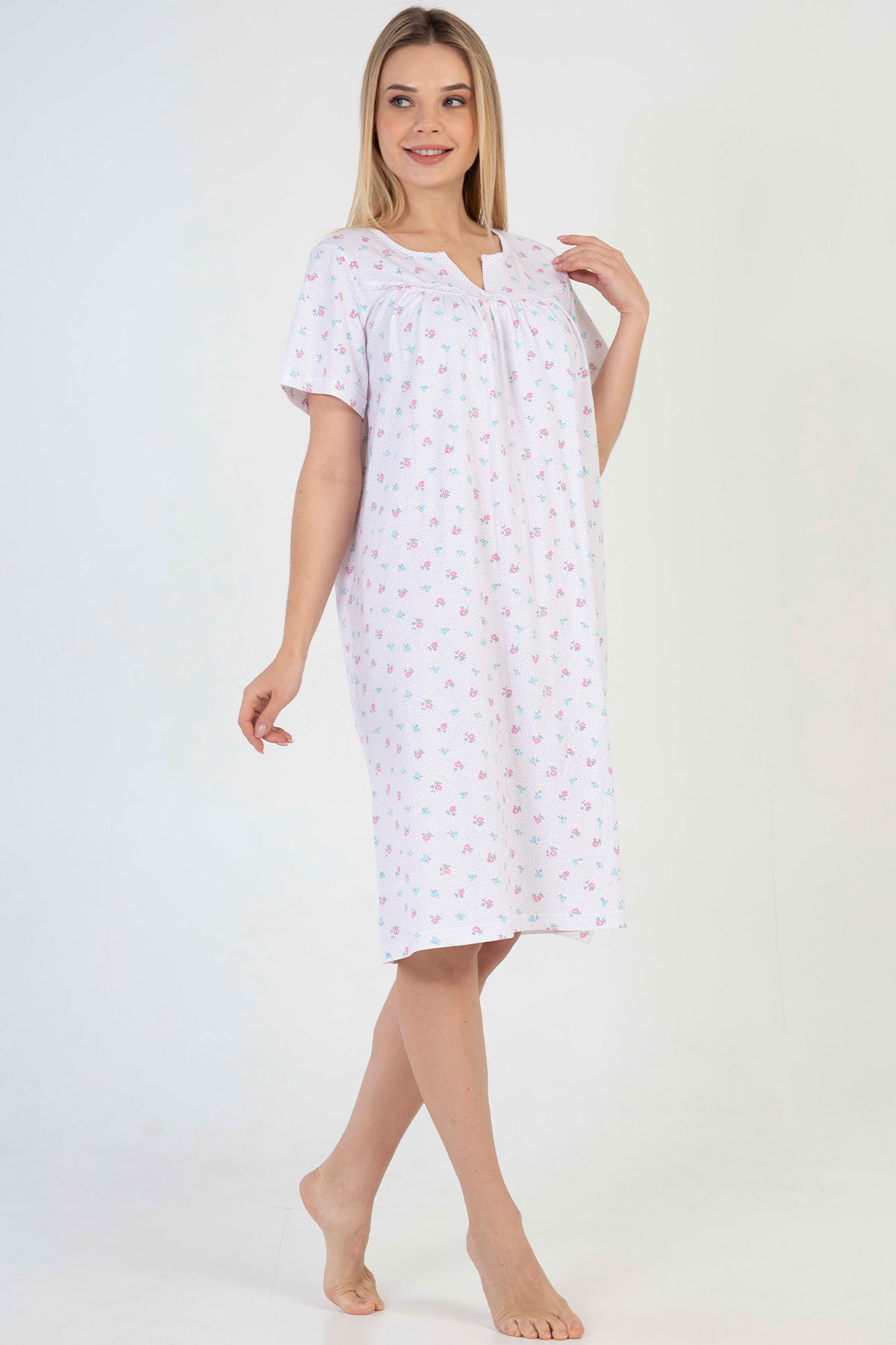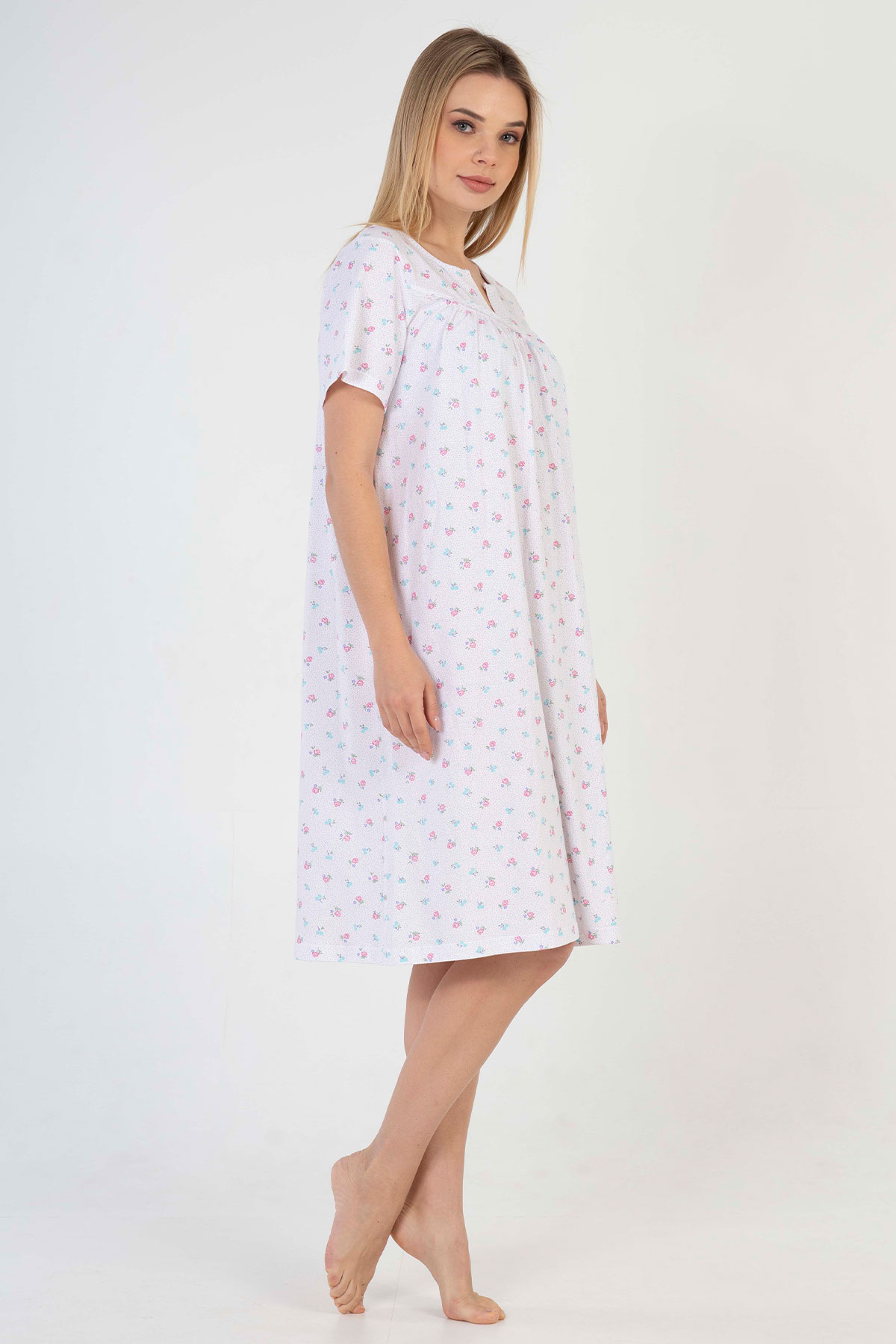 Model Tanımı: Kısa Kol Kısa Boy Gecelik *Mankenin Ölçüleri: Boy: 1,75 Göğüs: 86 Bel: 61 Basen: 90 *Mankenin Bedeni: S *Bedenler : M L XL XXL *Kumaş Karışımı: Pamuk 100%,